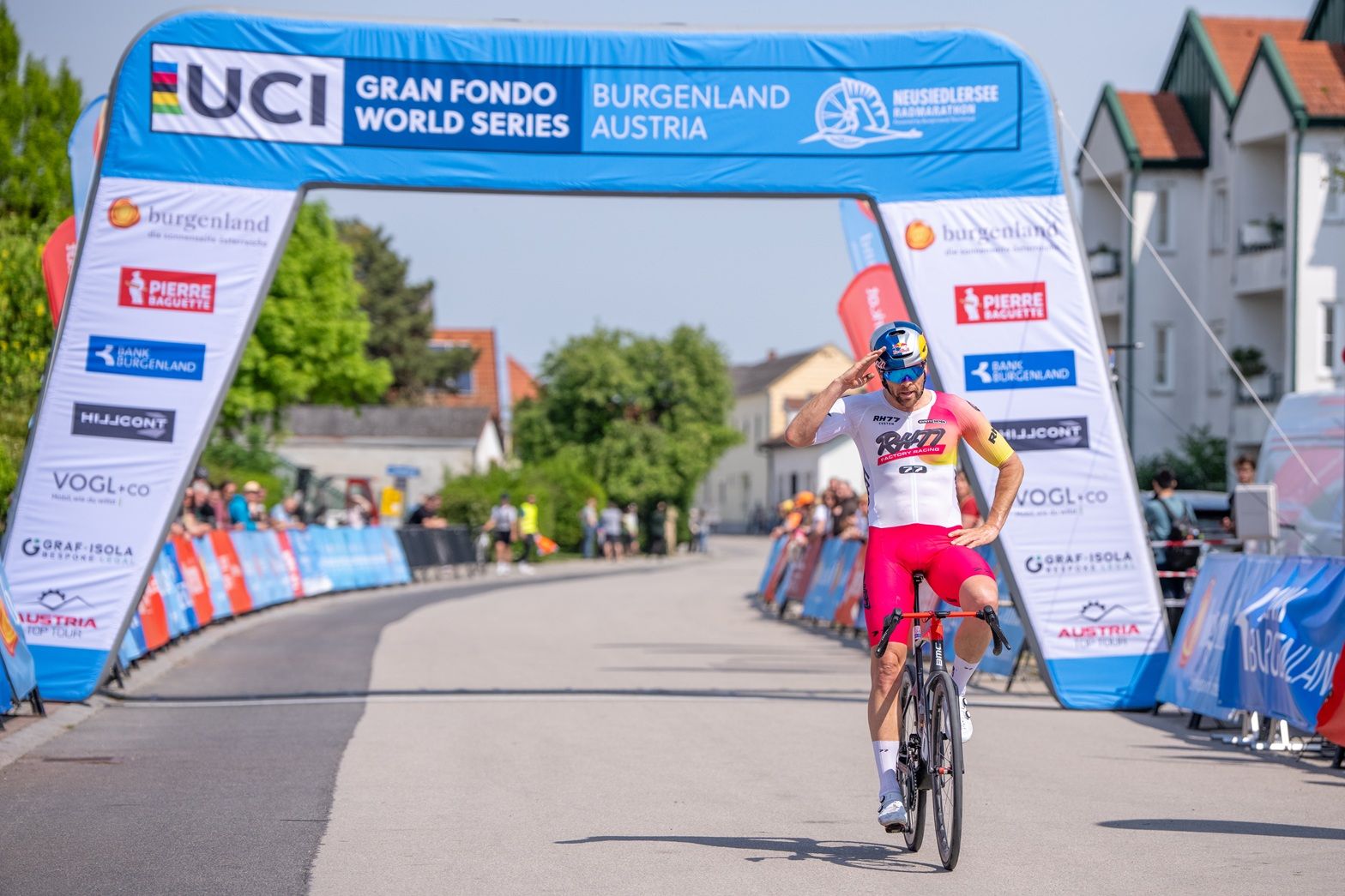 Snowboard-Crack Benjamin Karl absolvierte heute nach seinem Rücktritt vom Snowboardsport sein erstes Radrennen. Er wurde nicht nur von vielen Radfans, sondern auch von seinen prominenten Mitstreitern Ivan Basso, Rene Haselbacher, Johnny Hoogerland und Ex-Skispringer Martin Koch beobachtet. Auf der klassischen Radmarathonstrecke rund um das UNESCO Weltkulturerbe über 125 Kilometer und 600 Höhenmeter ging es gleich vom Start weg bei perfekten Bedingungen mit viel Sonne und wenig Wind richtig zur Sache. Bei extrem hohen Tempo dauerte es durch die pannonische Tiefebene. Das Tempo war enorm, das große Spitzenfeld legte die ersten eineinhalb Stunden mit knapp 47km/h zurück!